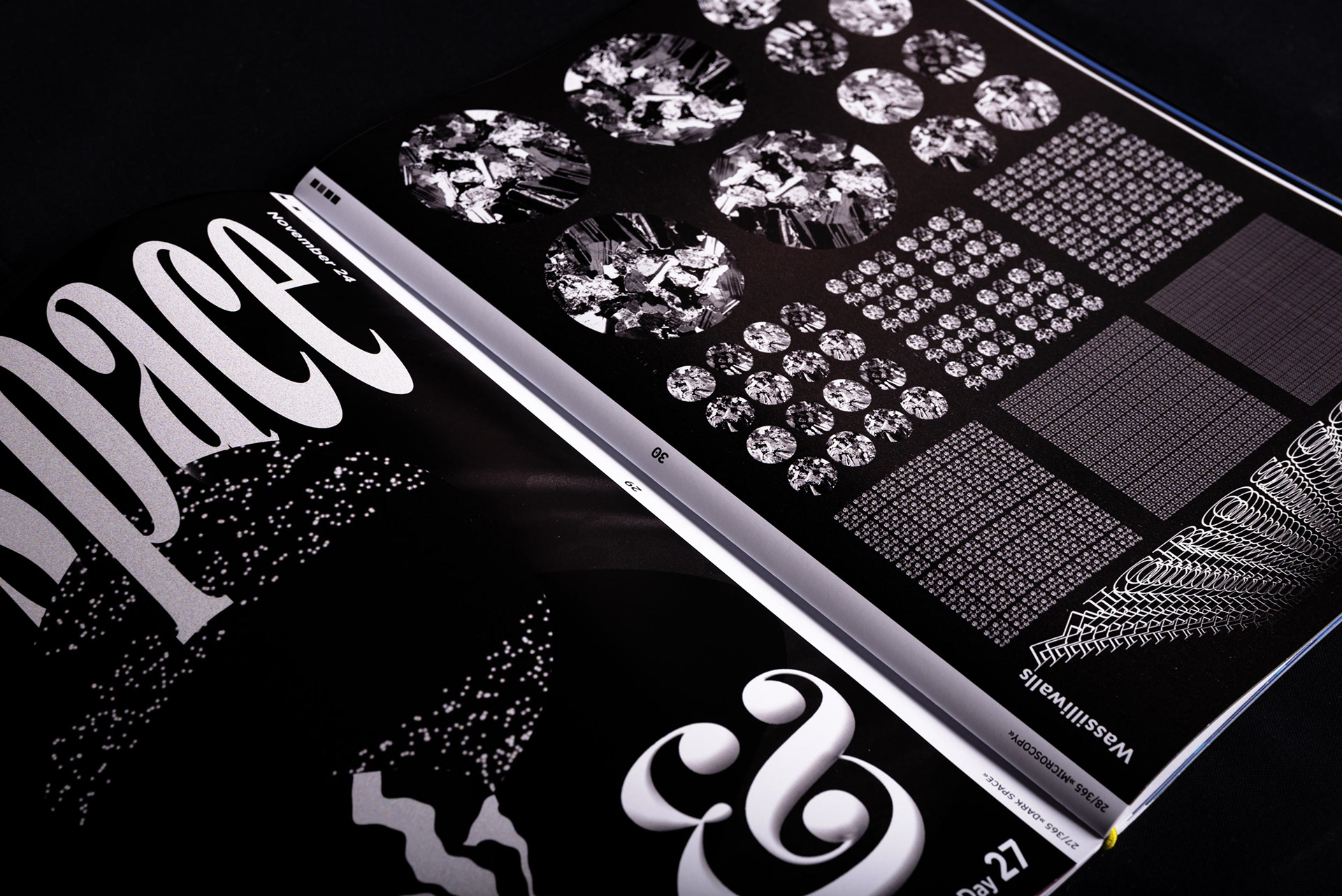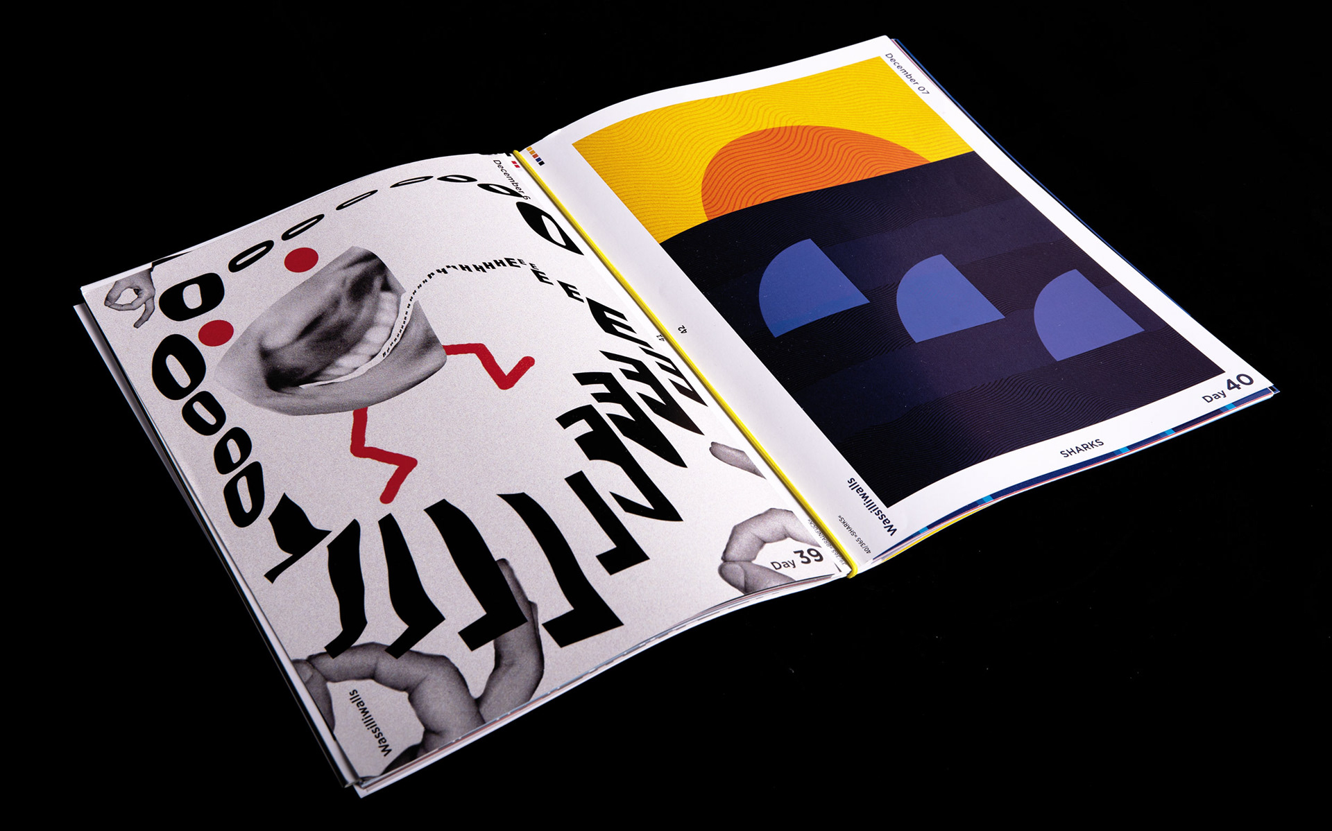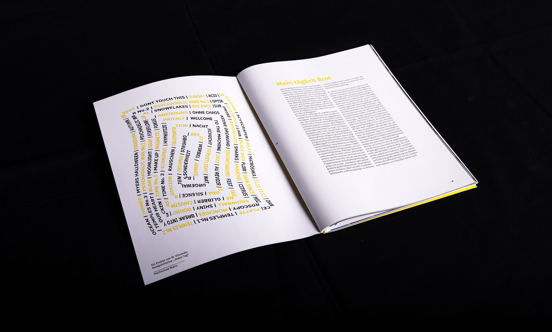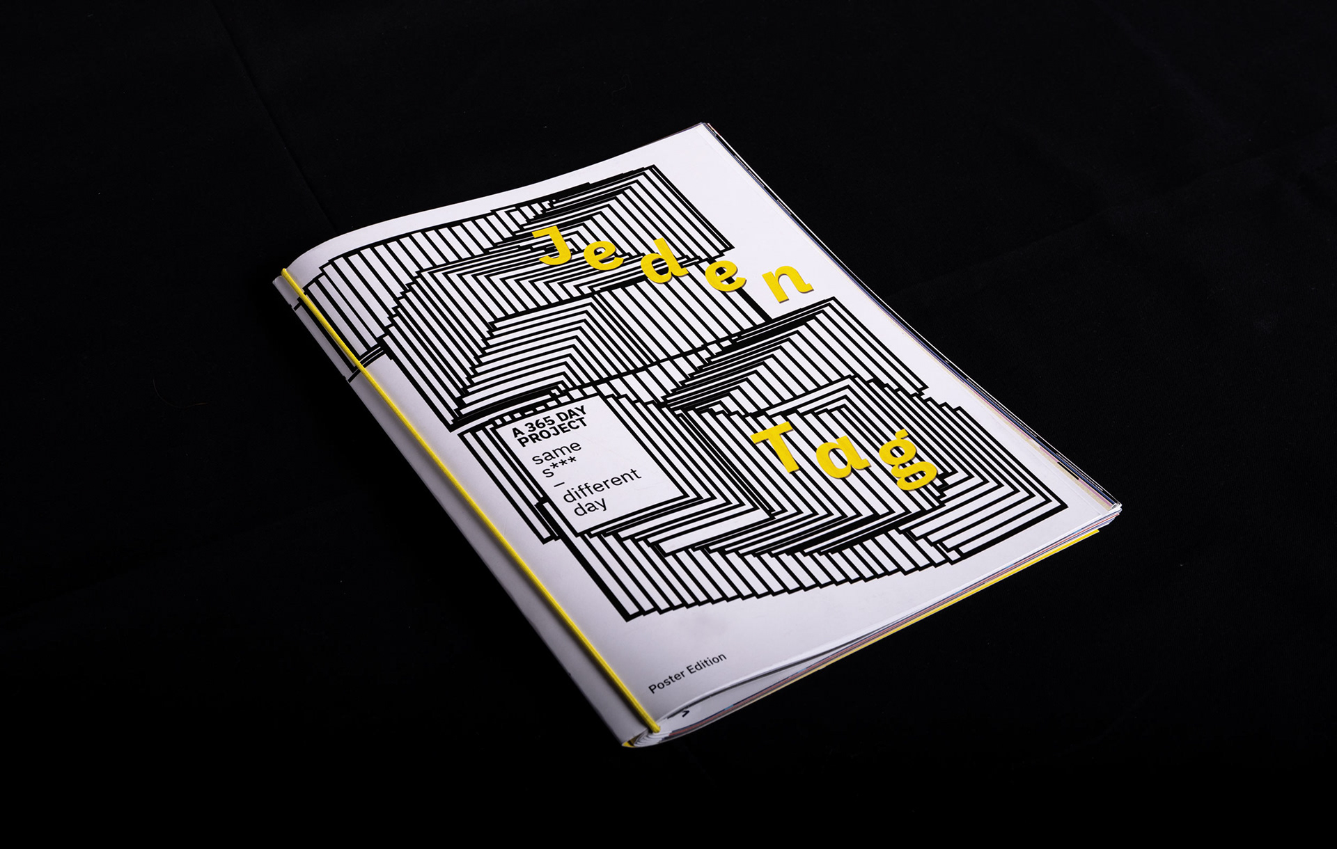 Nach ca. 3 Monaten der täglichen Arbeit wollte ich die bis dato entstanden Poster in einem Printprodukt zusammenfassen. Das Magazin ist DIN A4 groß und ist durch ein gelbes Stoffgummiband gebunden.