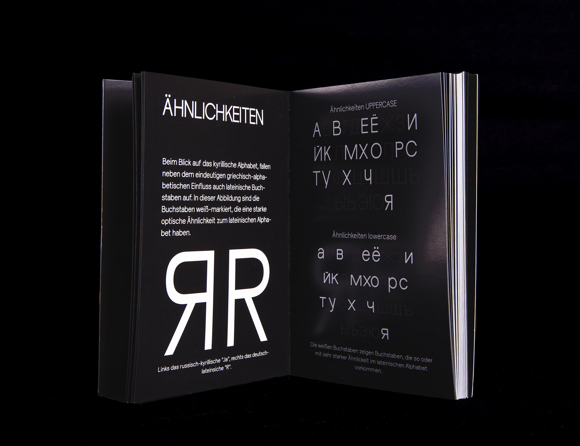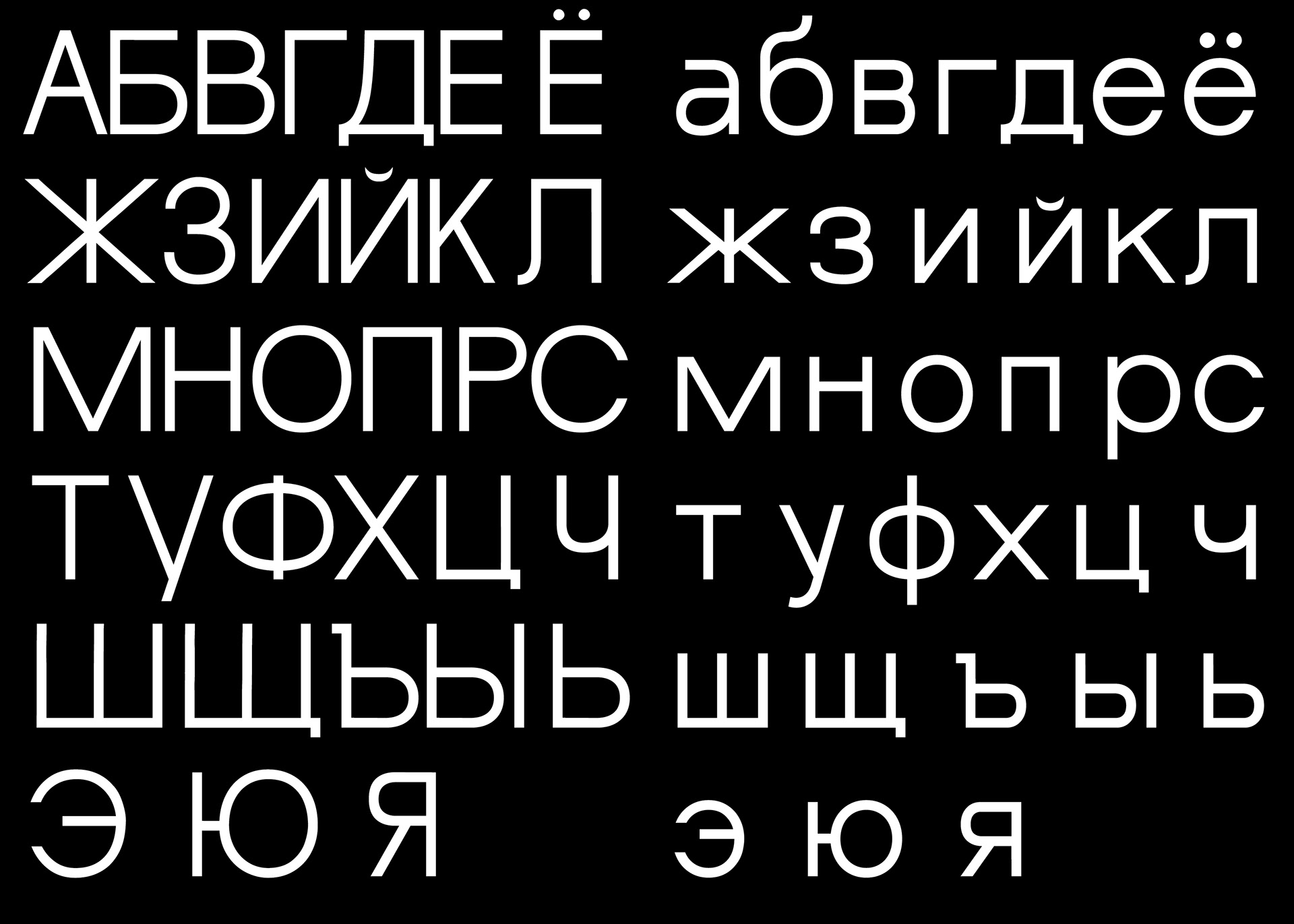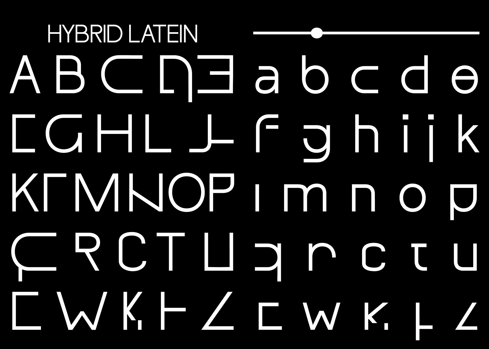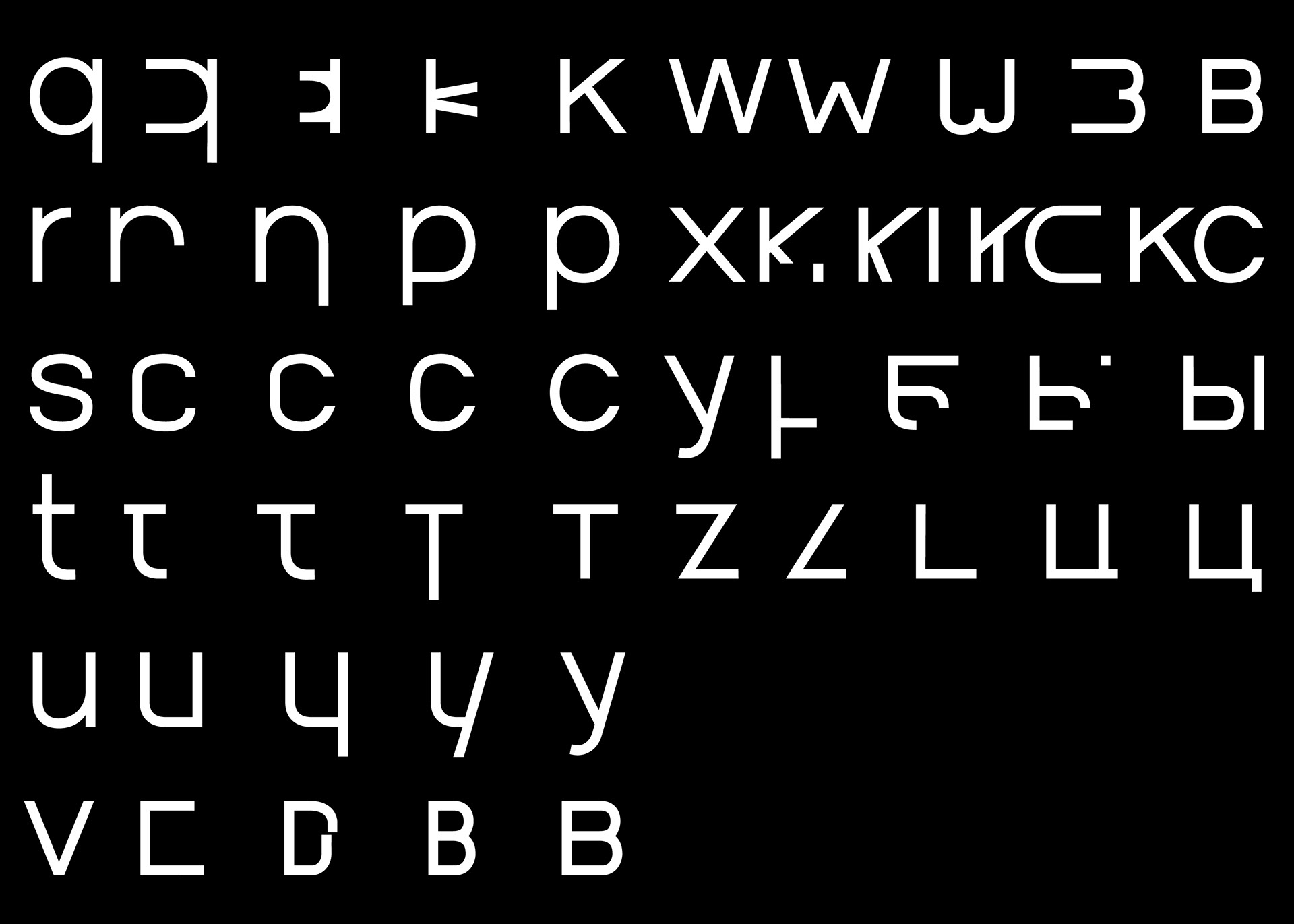 Diese “fusionierte Sprache" hat mich dazu inspiriert eine deutschrussische variable Font zu entwerfen, die auf ihren Achsen zwischen dem deutsch-lateinischen und russisch-kyrillischen Schriftsystem interpoliert und jeden einzelnen Letter in das eine oder das andere Schriftsystem phonetisch korrekt übersetzt. Durch die Interpolation von dem einen in das andere Schriftsystem entstehen Hybride Letter, die die fusionierte Sprache darstellen.