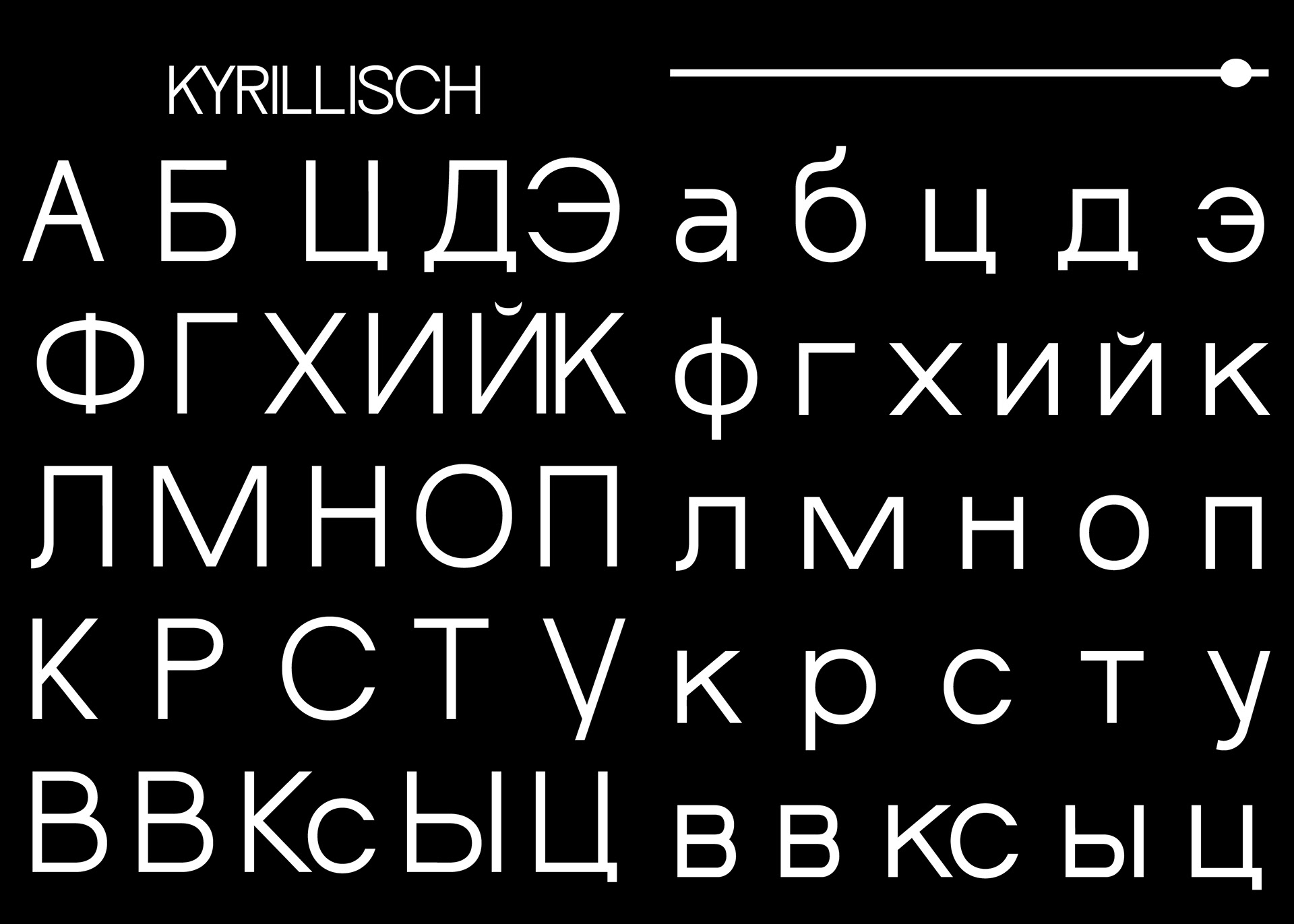 Zu dem variablen Font ist ein Specimen entstanden, der meine Erkenntnisse zu einem deutschrussischen oder auch multikulturellen variablen Font zusammenfasst.