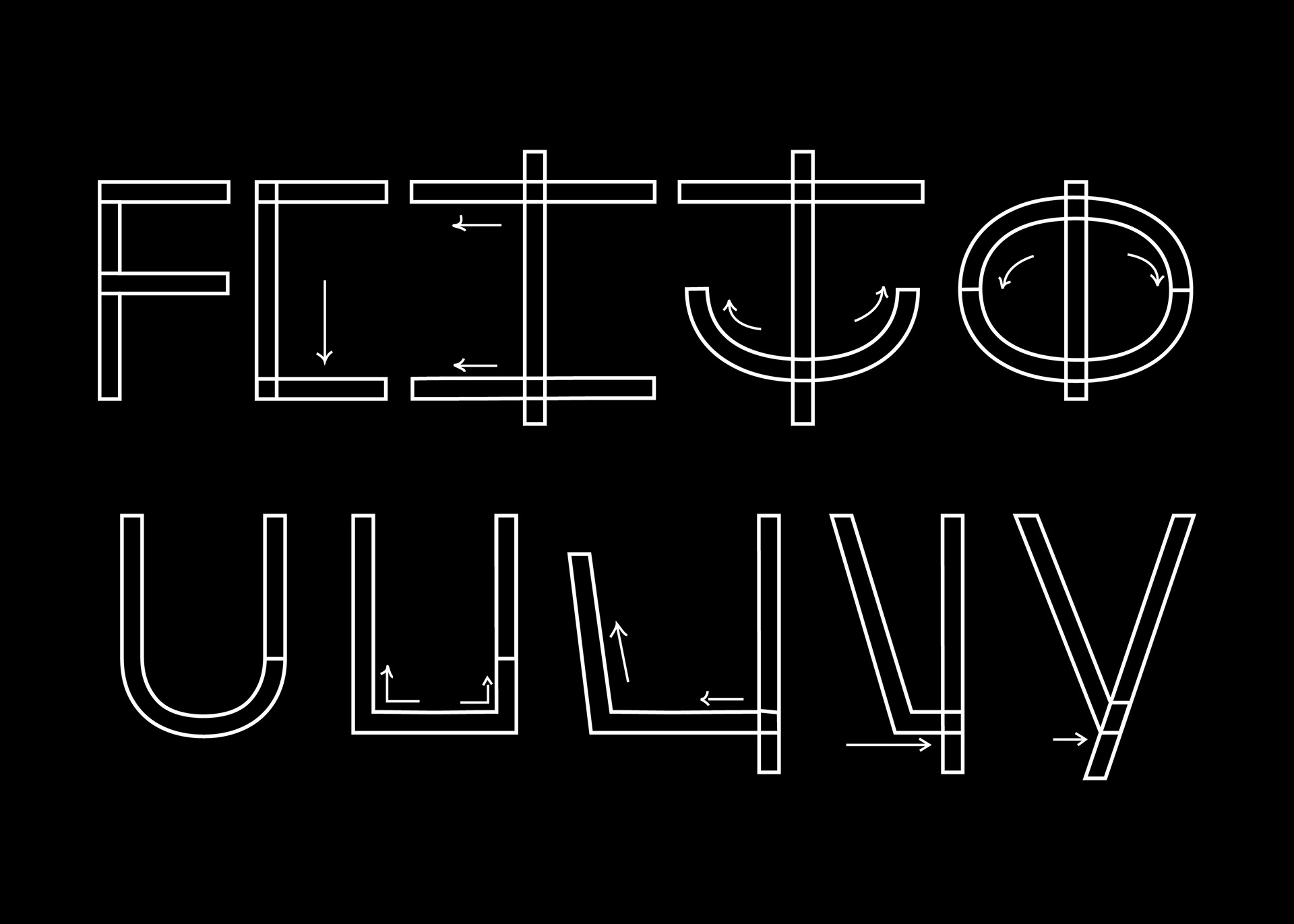 Die einzelnen Letter bestehen aus ungewöhnlich vielen Konturen, damit auch komplexe Interpolationen, wie z.B. zwischen dem lateinischen F in ein kyrillisches F möglich sind. Hierbei war ich nicht nur in der Funktion eines Schriftgestalters, sondern auch eines Motion-Designers tätig.