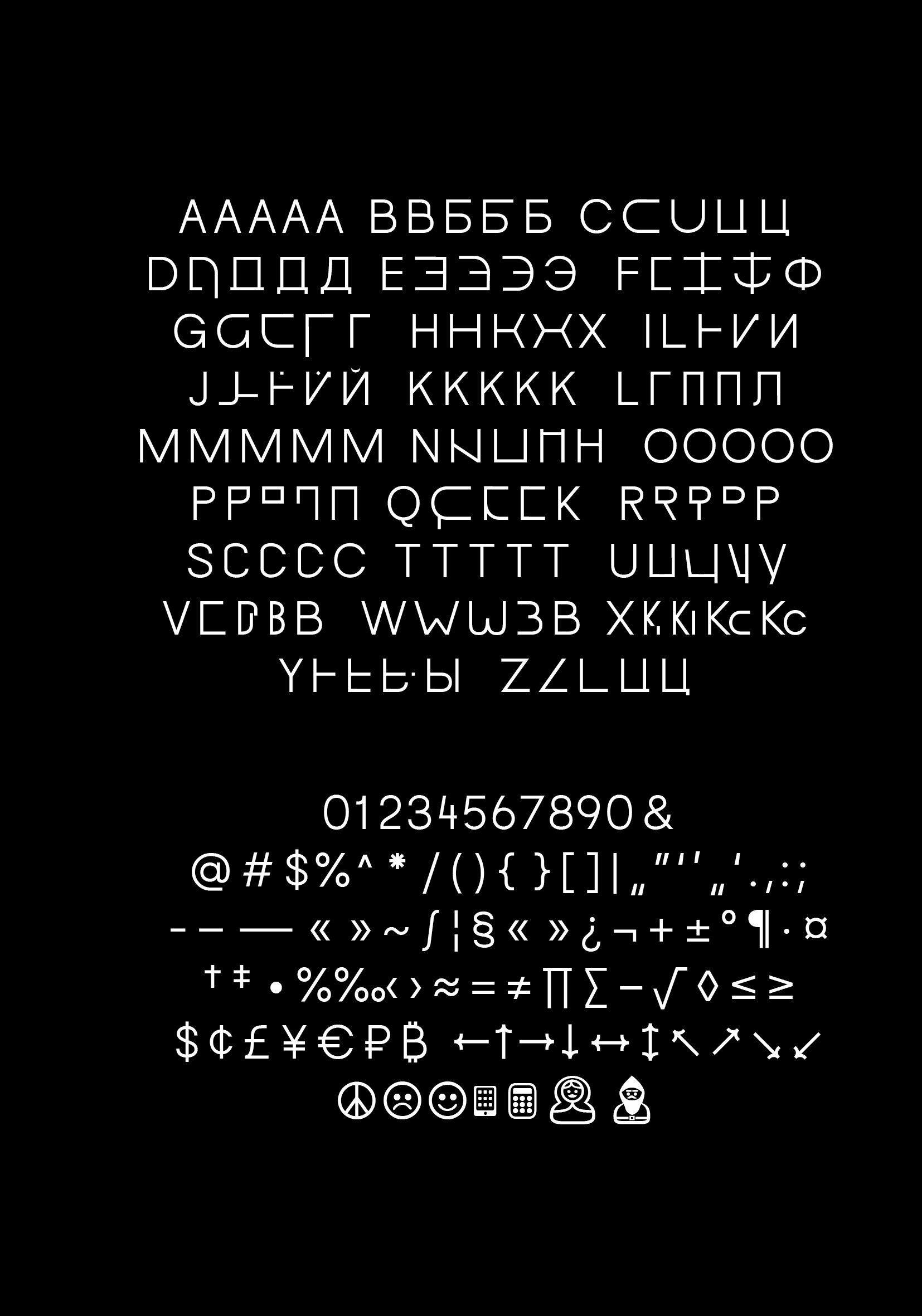 Durch die Interpolation vom Latein-Master in den Kyrillisch-Master entstehen neue, individuelle Letter.